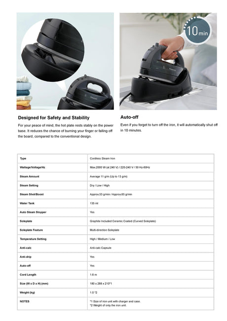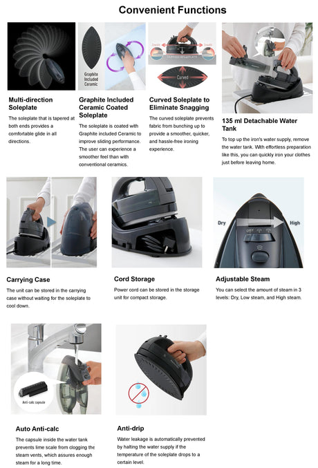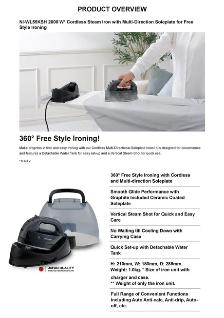 Panasonic NI-WL55KSH Cordless Steam Iron 2000W (Black)