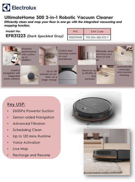 Electrolux EFR31223 UltimateHome 300 2-in-1 Robotic Vacuum and Mop Cleaner