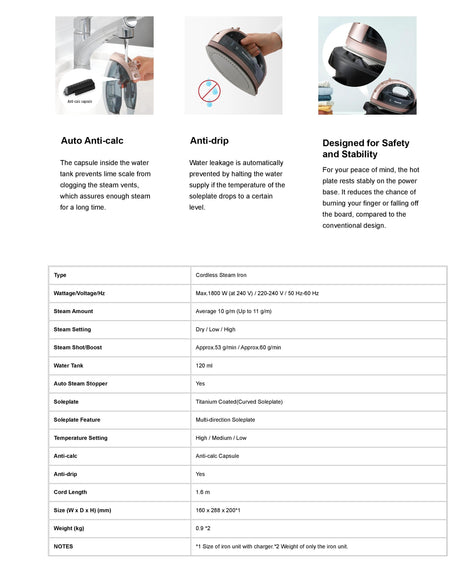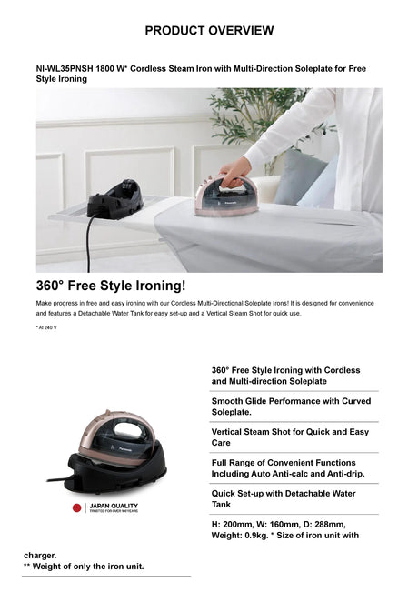 Panasonic NI-WL35PNSH Cordless Steam Iron 1800W (Pink Gold)