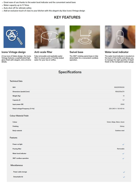 Delonghi KBOV2001 Icona Vintage Kettle 1.7L