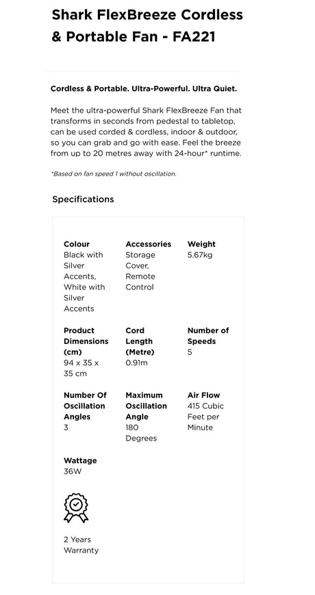 Shark FA221 FlexBreeze Cordless & Portable Fan