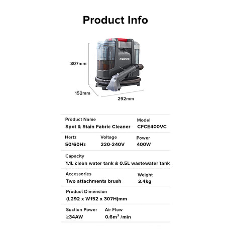 Cornell CFC-E400VC Spot and Stain Fabric Cleaner - Sofa, Mattress and Carpet Cleaner