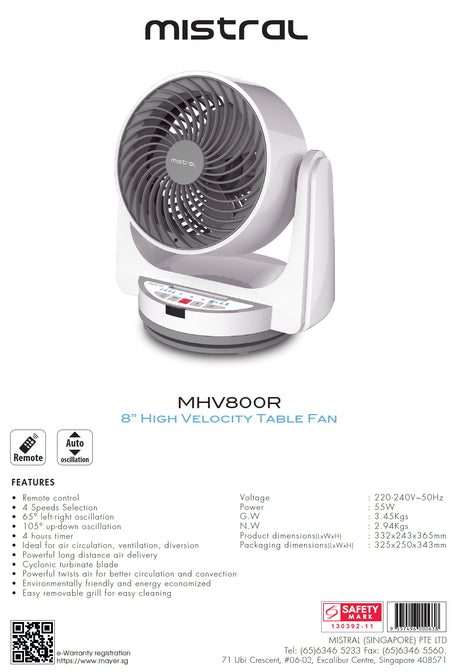 Mistral MHV800R High Velocity Power Fan 8 Inch