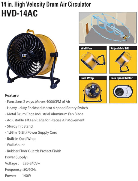 Caterpillar HVD-14AC High Velocity Drum Air Circulation Fan 14 Inch