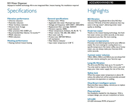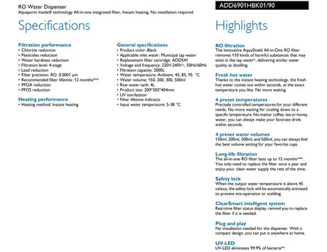 Philips ADD6901HBK01/90 RO Water Dispenser With 4 in 1 RO Filter