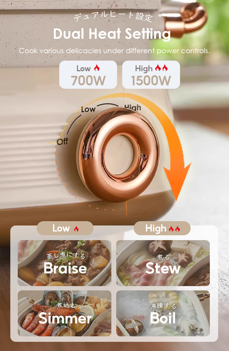 • Detachable and washable non-stick aluminium pot for easy cleaning