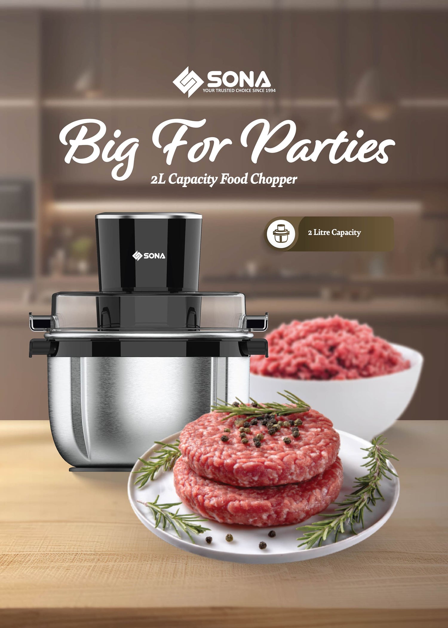 Sona SFC 3081 | SFC3081 Stainless Steel Food Chopper 2L is backordered and will ship as soon as it is back in stock.