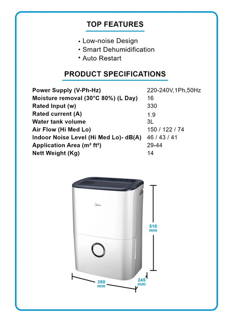 Midea MDDF-16DEN7 Smart Dehumidifying Dehumidifier, 16L