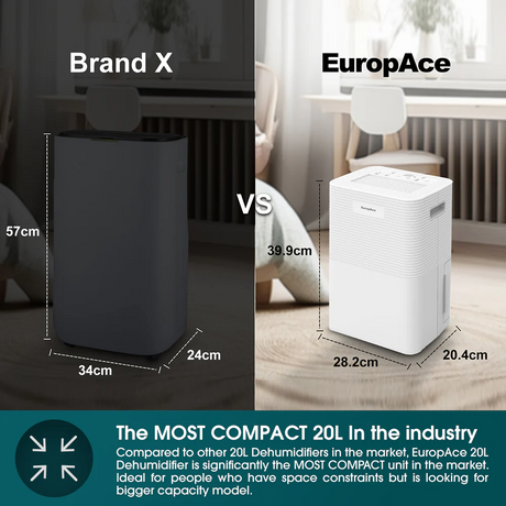 Europace EDH3200DWH Most Compact Dehumidifier + Odour Remover + Laundry Dryer (3-in-1) - 20L