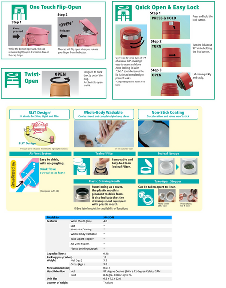 Zojirushi SM-SD48 Stainless Mug 0.48L