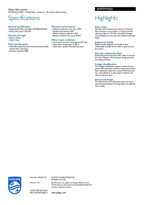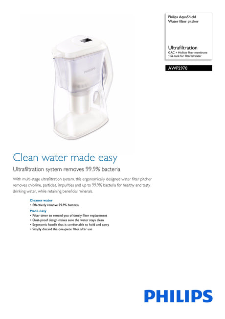 Philips AWP2970/03 AquaShield Water Filter Pitcher