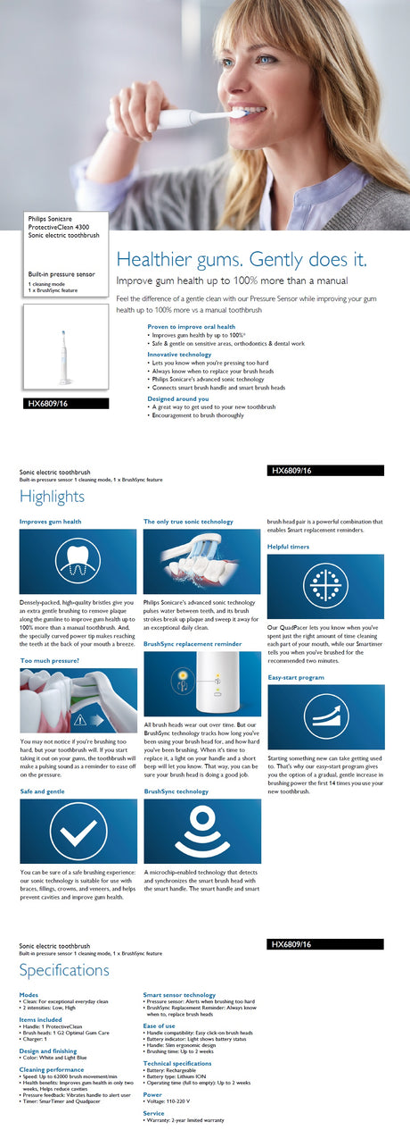 Philips HX6809/16 Sonicare ProtectiveClean 4300 Sonic Electric Toothbrush