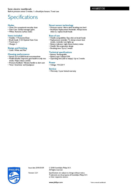 Philips HX6857 Sonicare ProtectiveClean 5100 Sonic Electric Toothbrush