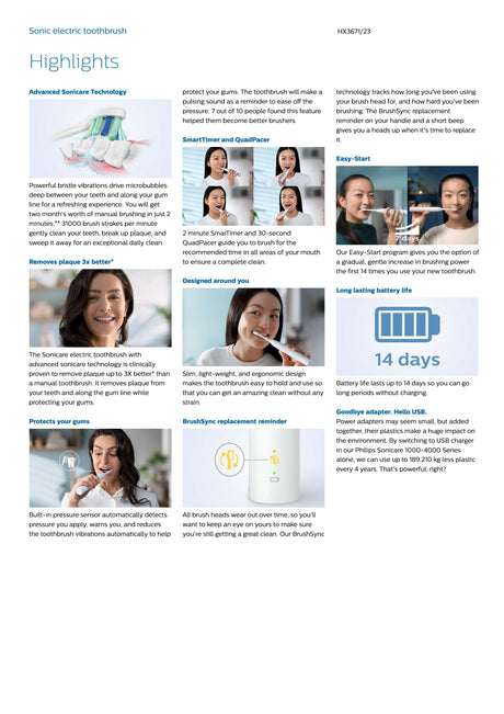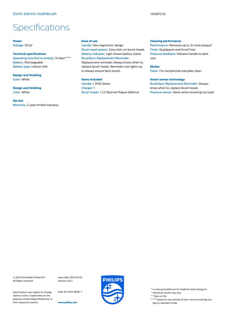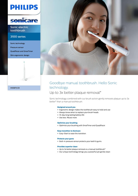 Philips HX3671 Sonic Electric Toothbrush 3100 Series