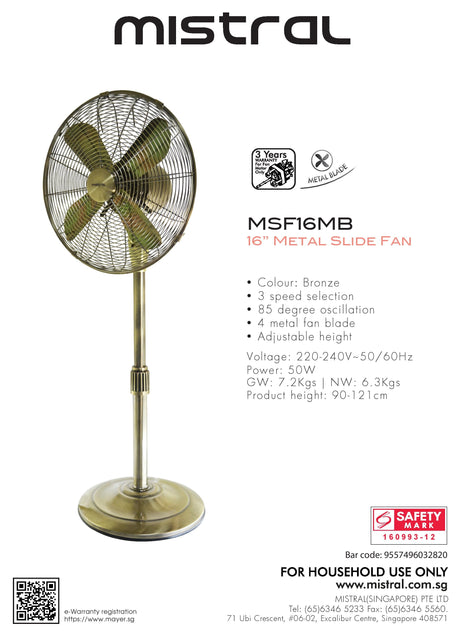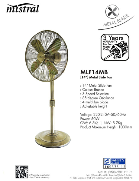 Mistral MLF14MB Metal Slide Fan 14 Inch