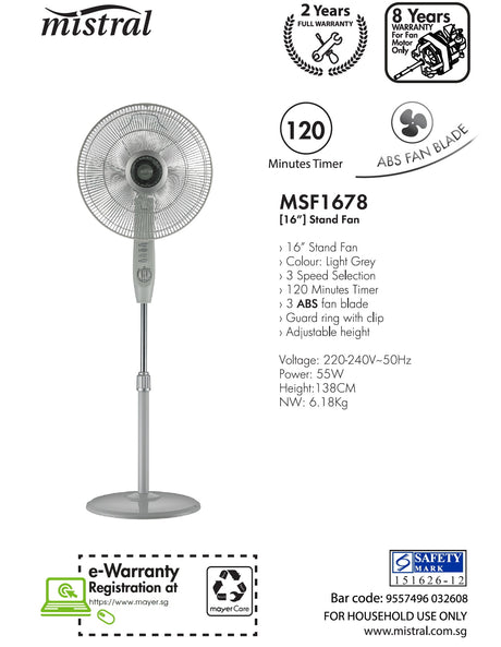 Mistral MSF16MB Metal Stand Fan 16 Inch