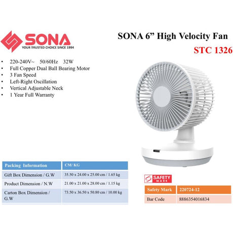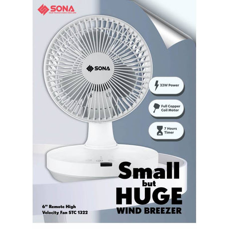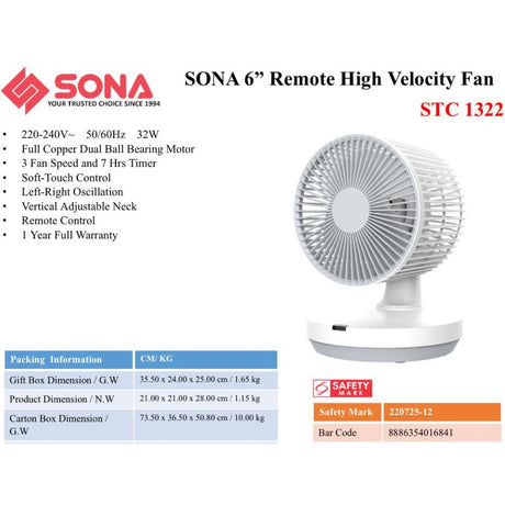 Sona STC 1322 Remote High Velocity Fan 6 Inch