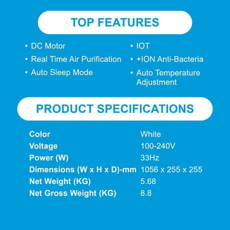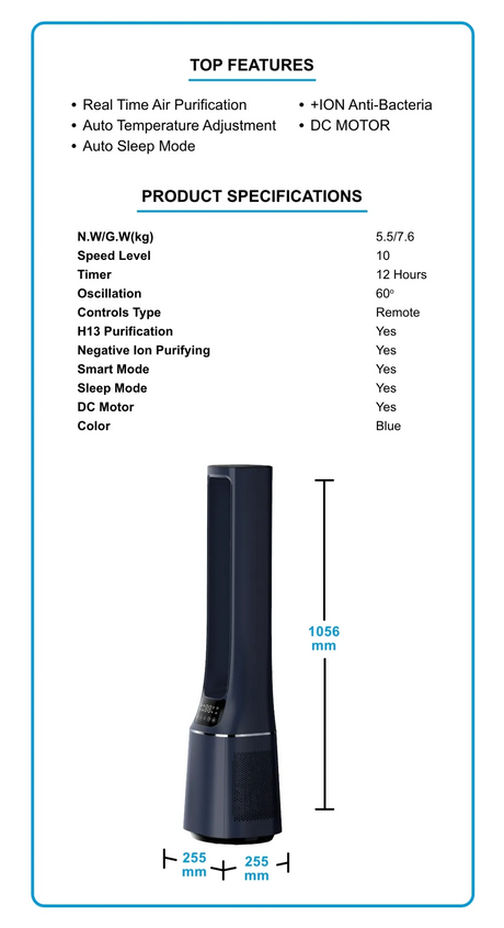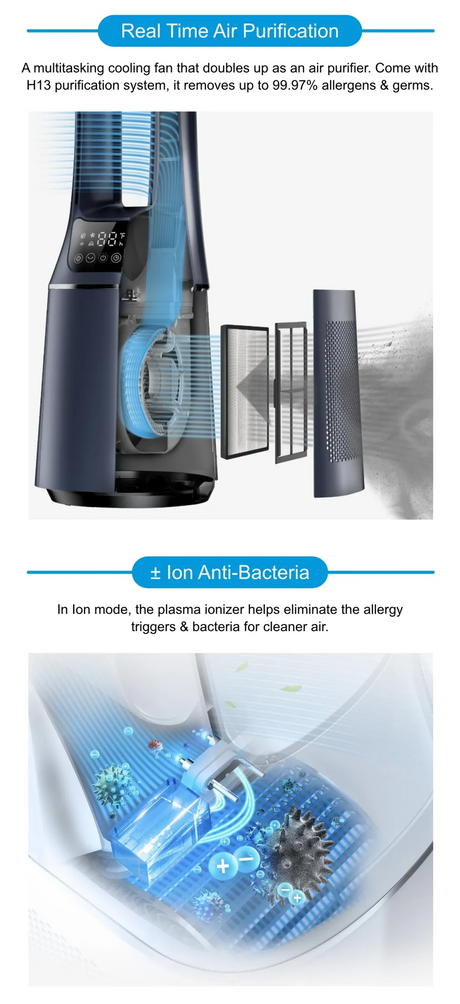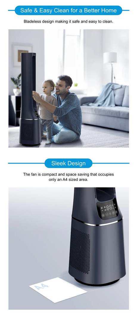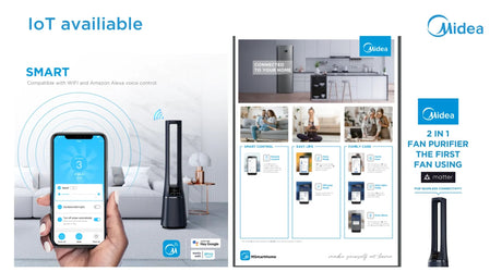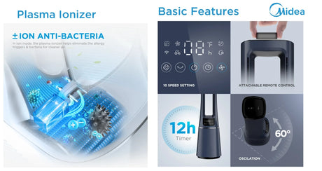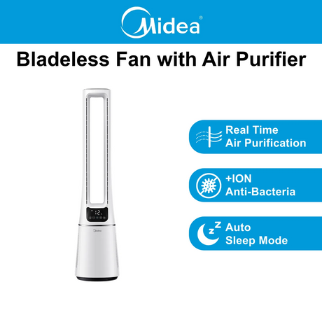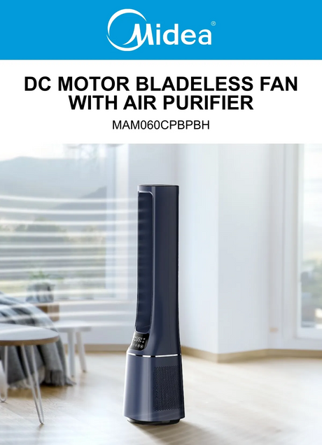 Midea MAM060CPAPWH | MAM060CPBPBH Remote DC Motor Bladeless Fan with Air Purifier - 2 Color Options