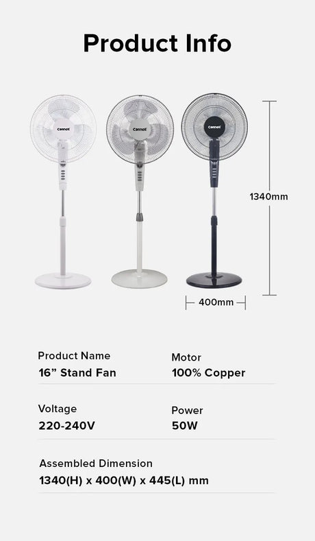 Cornell CFN-S40 | CFN-S40BK | CFN-S40GY | CFN-S40WH Stand Fan 16 Inch - 3 Color Options Available