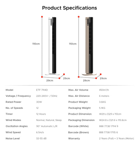Europace ETF 7114D | ETF7114D Remote DC Tower Fan with Air Sterilizer