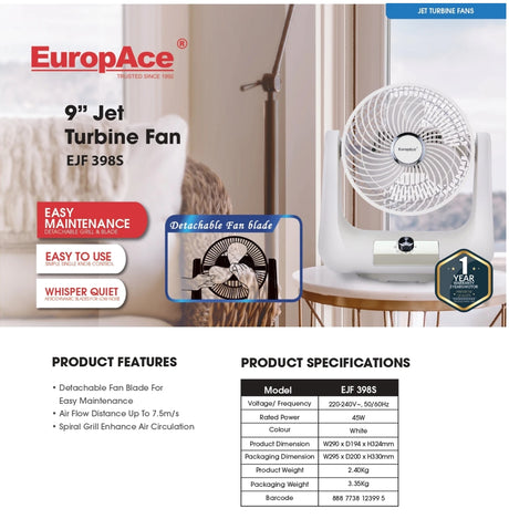 Europace EJF 398S | EJF398S Jet Turbine Fan 9 Inch