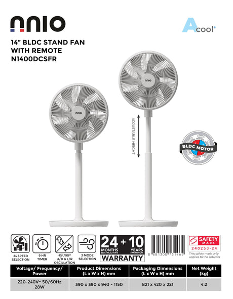 NNIO N1400DCSFR Remote BLDC Stand Fan 14 Inch