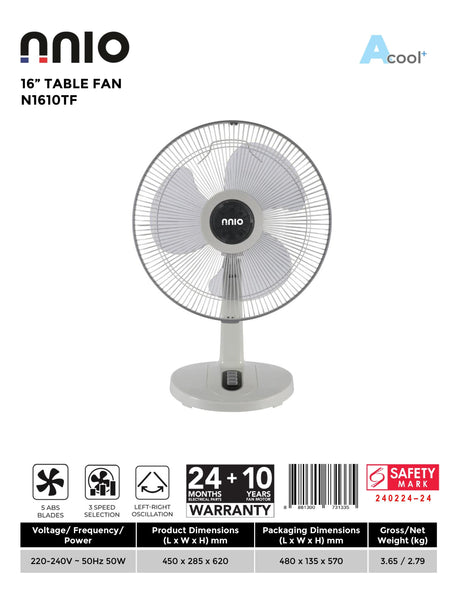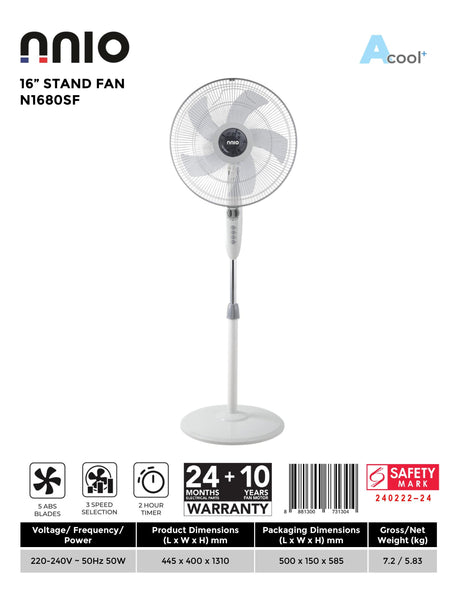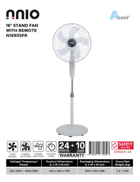 NNIO N1690SFR Remote Stand Fan 16 Inch