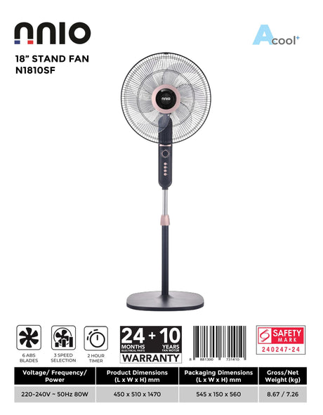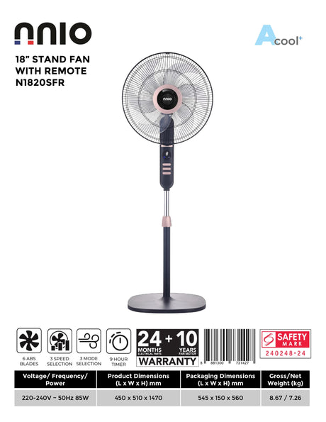NNIO N1820SFR Remote Stand Fan 18 Inch
