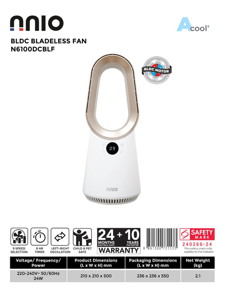 NNIO N6100DCBLF BLDC Bladeless Fan