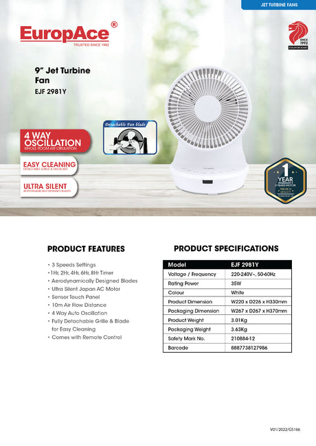 Europace EJF 2981Y | EJF2981Y Jet Turbine Fan 9 Inch
