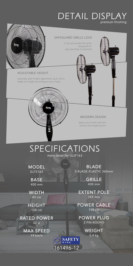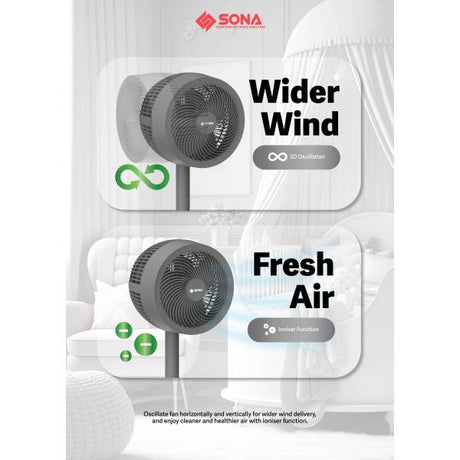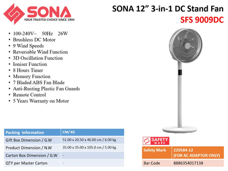 Sona SFS 9009DC | SFS9009DC 3 In 1 Remote DC Stand Fan 12 Inch