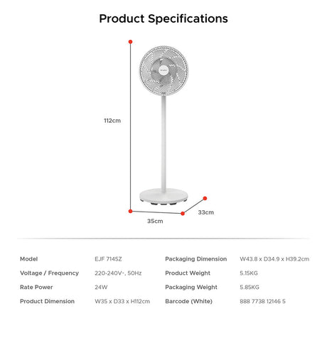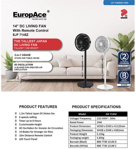 Europace EJF 7145Z DC Motor Tatami Fan with Remote Control 14 Inch