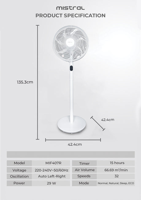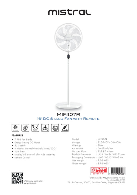 Mistral MIF407R DC Stand Fan with Remote 16 Inch