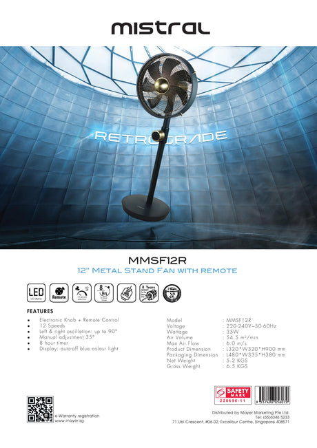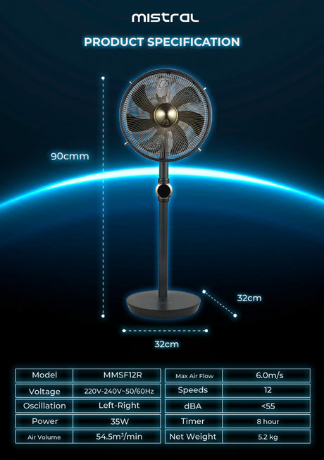 Mistral MMSF12R Remote DC Metal Stand Fan 12 Inch