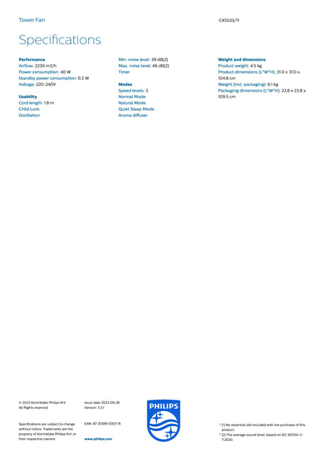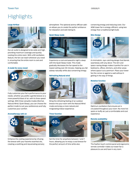Philips CX5535/11 Remote Tower Fan 5000 Series