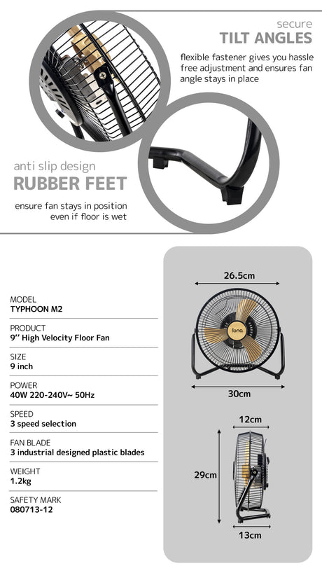 Iona Typhoon M2 High Velocity Floor Fan 9 Inch
