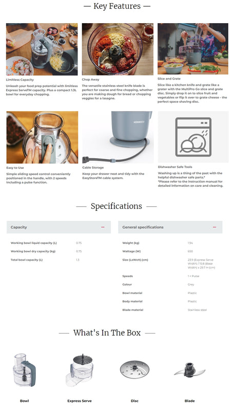 Kenwood FDP22.130GY MultiPro Go Food Processor