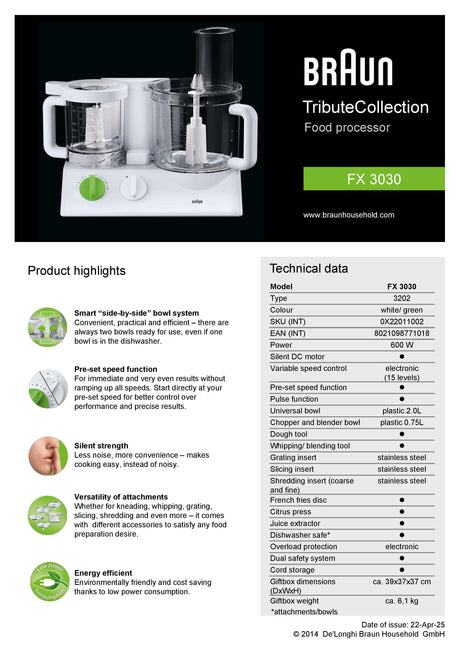Braun FX3030 TributeCollection Food Processor 600W