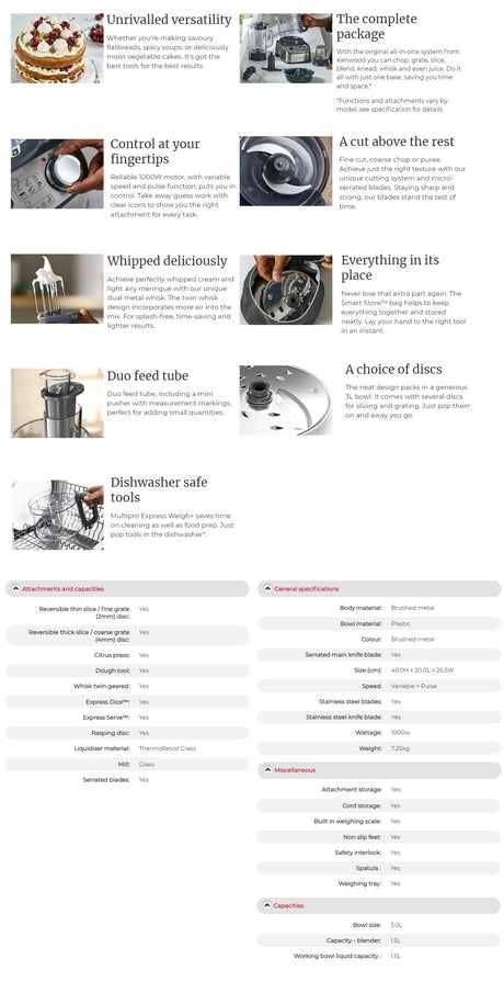 Kenwood FDM71.970SS | FDM71.970 Multipro Express Weigh+ Food Processor