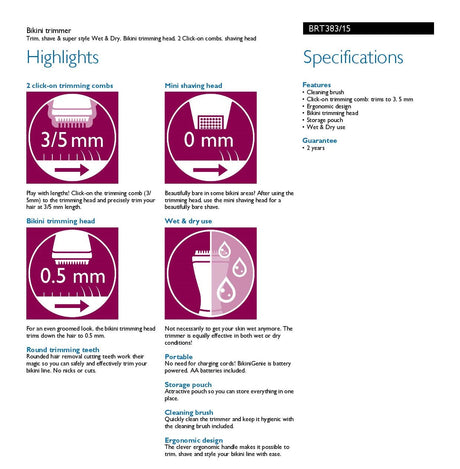 Philips BRT383 BikiniGenie Bikini Trimmer