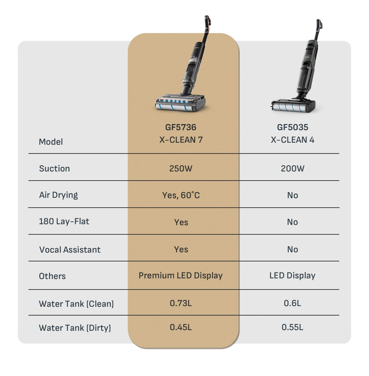 Up to 50 mins runtime, with 650ml clean water tank and 500ml dirty water tank