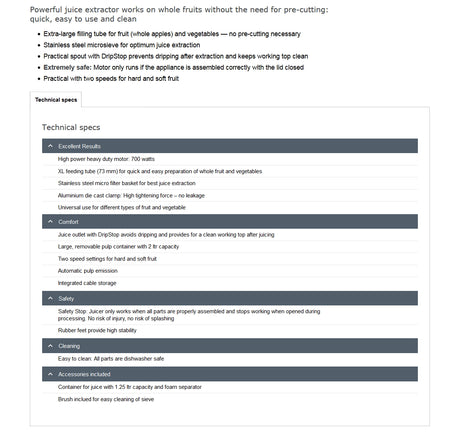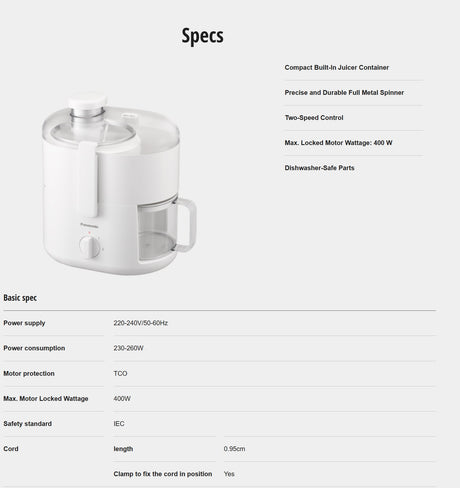 Panasonic MJ-CS100WSP Centrifugal Juicer 500ml