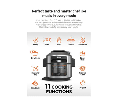 Ninja OL550 Foodi 11 in 1 SmartLid Multi cooker in one pot with 6L Capacity and Recipe Book