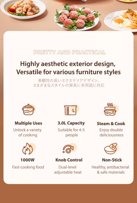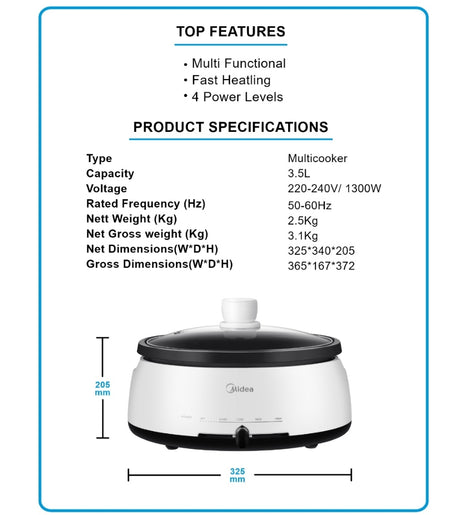 Iona GLMC1832 Multi Cooker With Steamer 3L