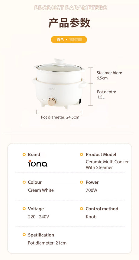 Iona GLMC1815 Multi Cooker With Steamer 1.5L