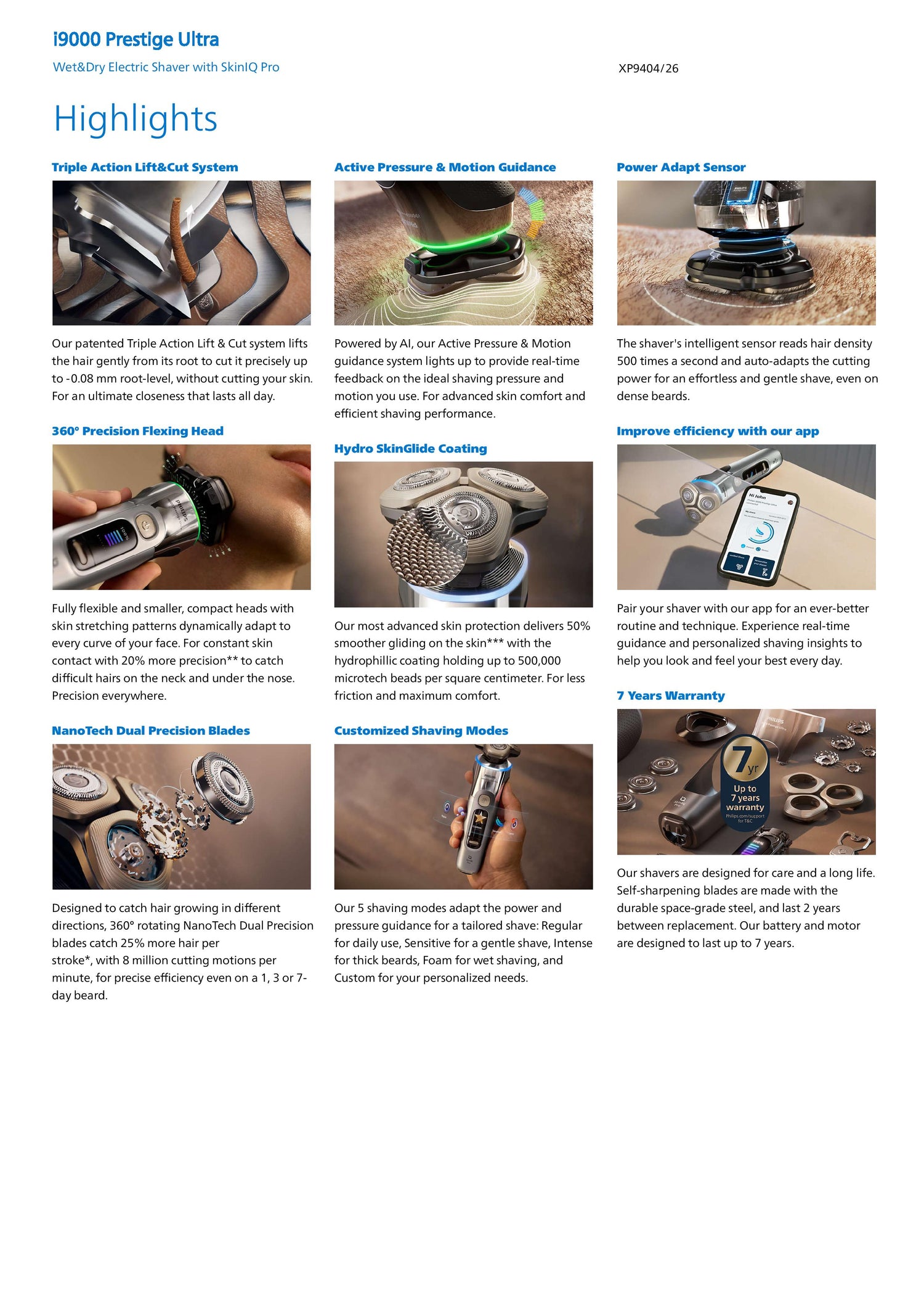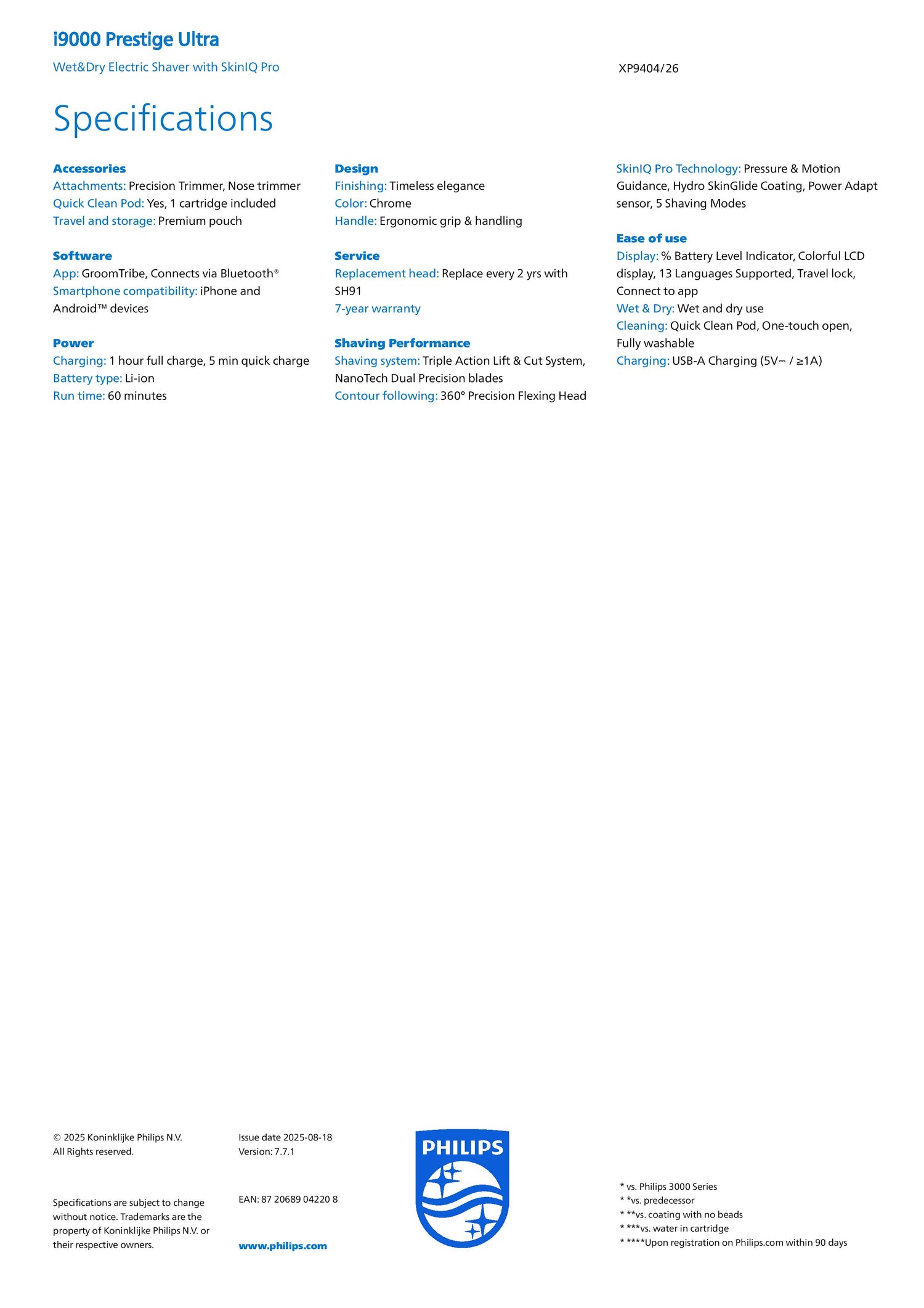 Philips XP9404/26 | XP9404 Wet & Dry Electric Shaver with SkinIQ Pro i9000 Prestige Ultra