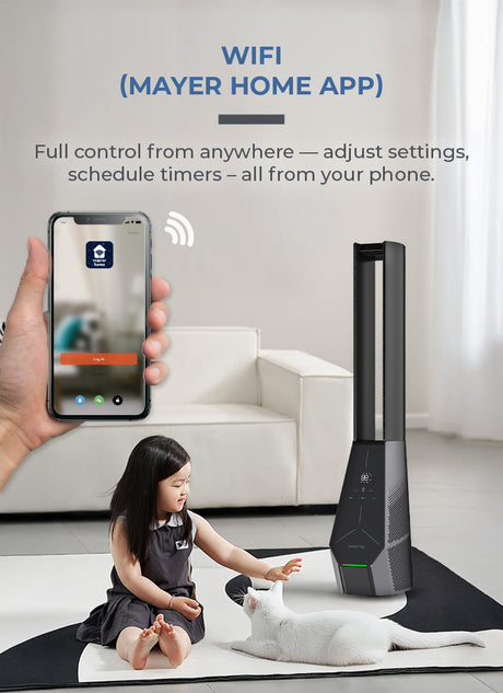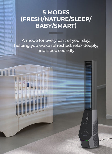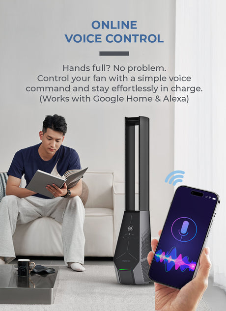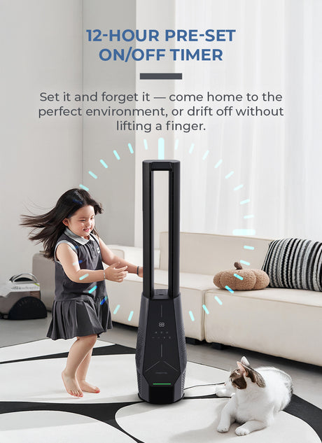 Midea MAM060CPAPWH | MAM060CPBPBH Remote DC Motor Bladeless Fan with Air Purifier - 2 Color Options