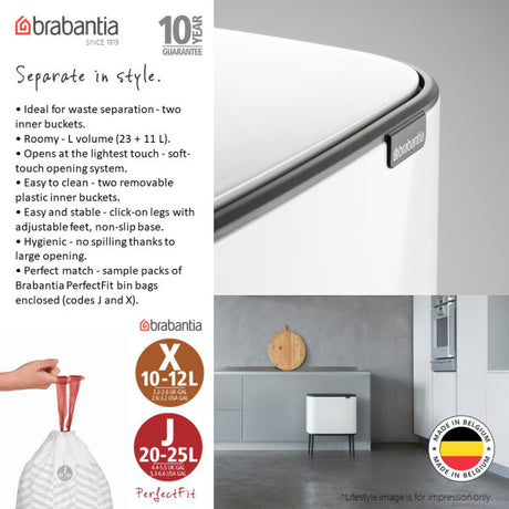 Brabantia Bo Touch Bin with 2 Inner Buckets 11 + 23L - BBT 313547 | BBT 316142 | BBT 316203
