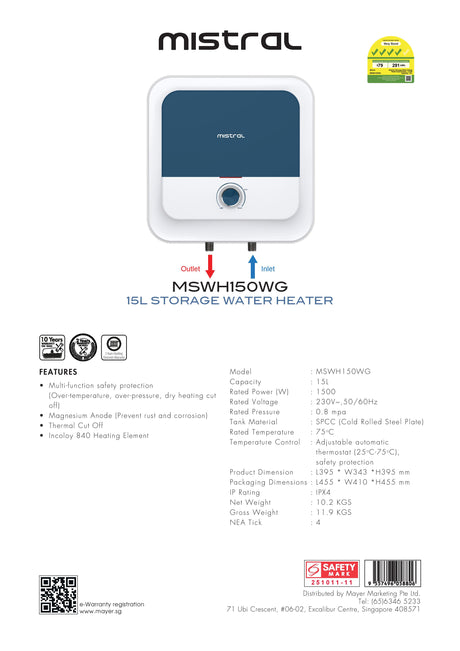 Mistral MSH708 Copper Inner Tank Instant Water Heater