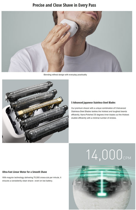 Panasonic ES-PV6A 5-Blade Palm-Sized Wet and Dry Rechargeable Shaver - Made in Japan
